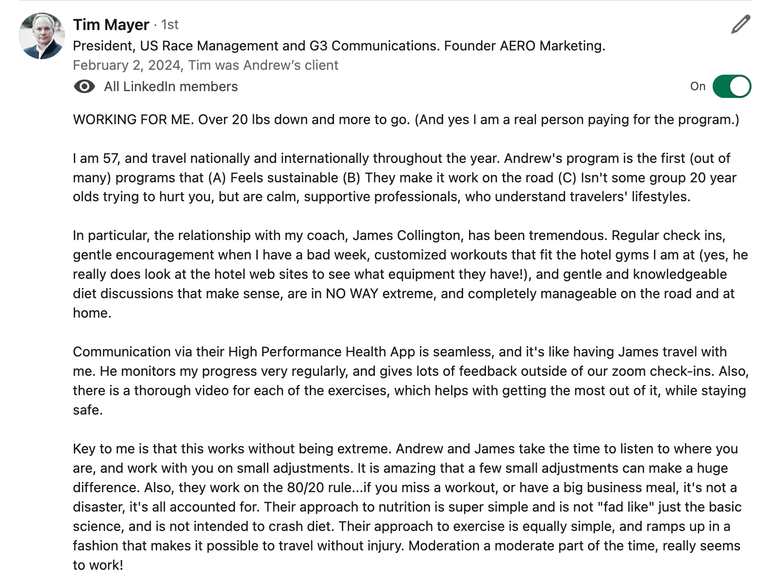 REAL, HONEST, PUBLIC REVIEWS FROM ELITE MEN & WOMEN