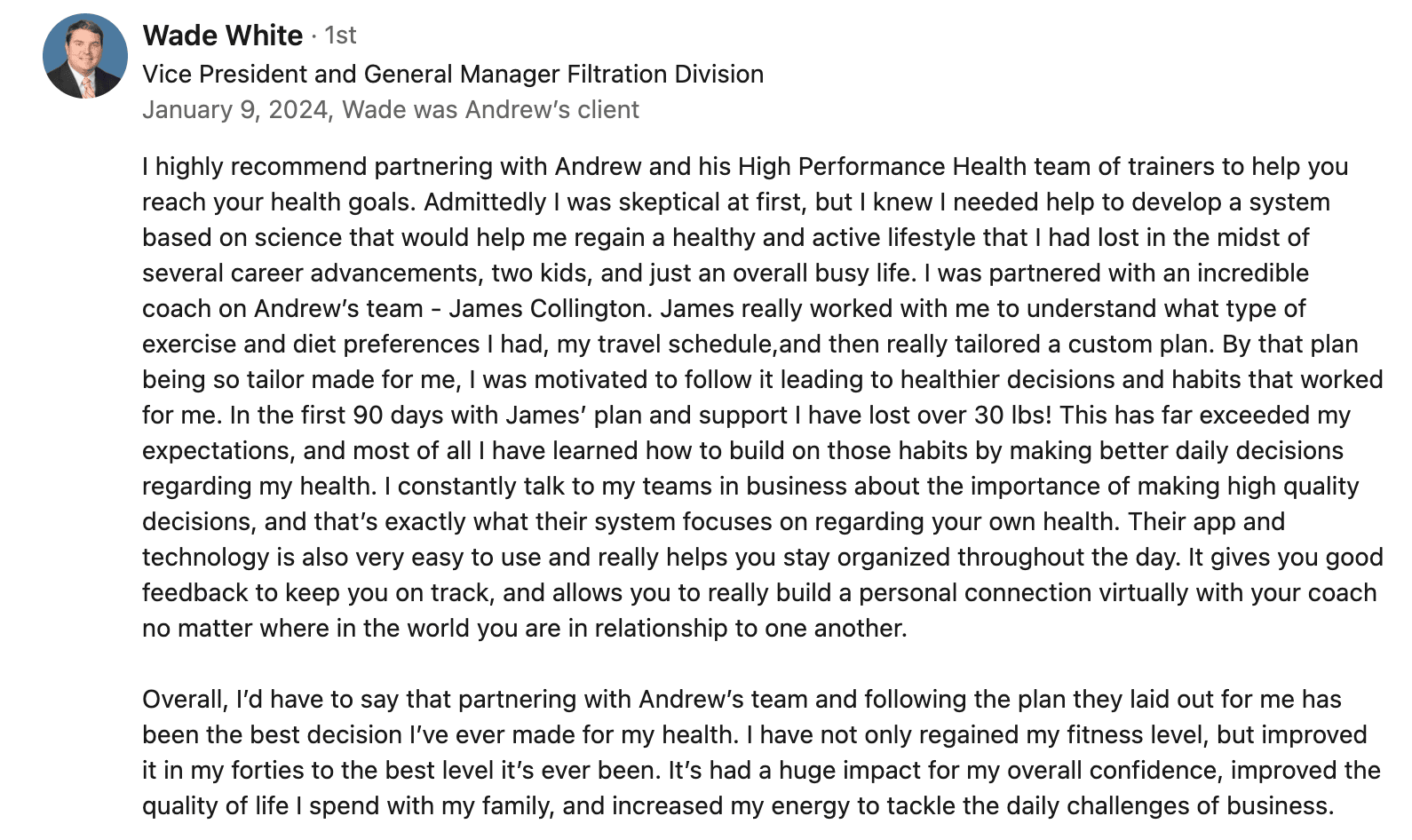 Wade, 44, VP. Struggled To Stick To Healthy Habits With A Busy Schedule & Travel