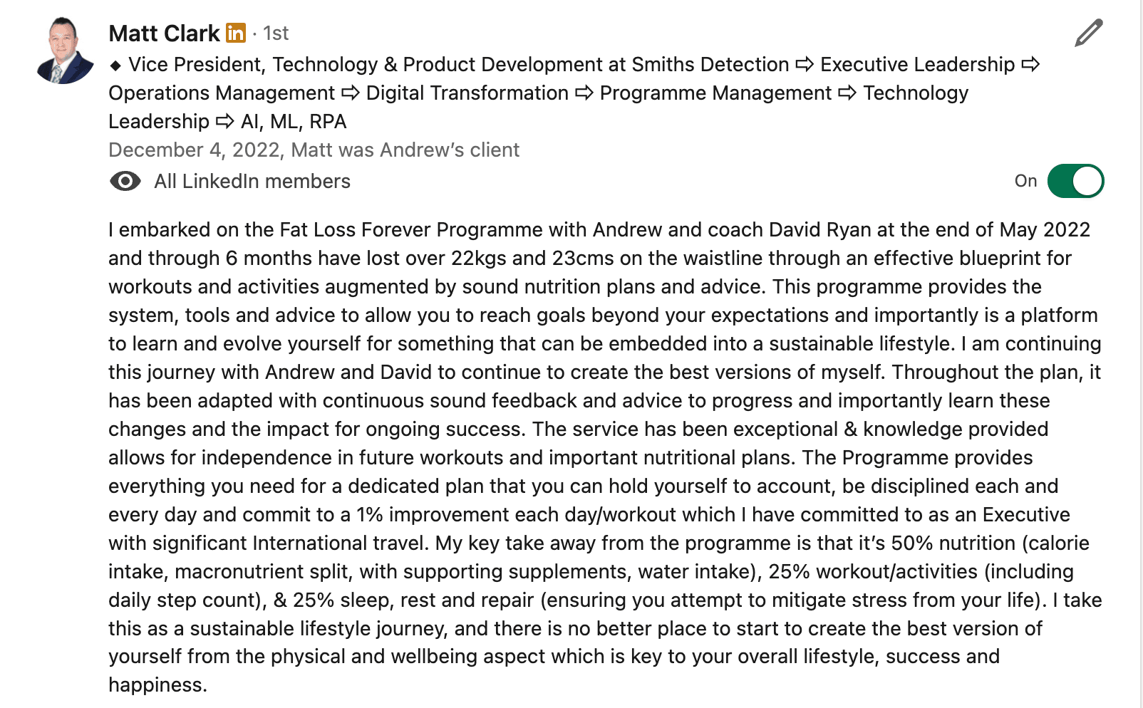 Josh, 46, Executive. Hit 290lbs & Needed To Make Changes. His Energy Was Low & Lacked Motivation